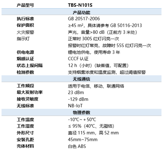 为进一步满足市场多样化需求,优化消防解决方案,182体育科技NB-IoT新品烟感TBS-N101S正式投放市场。 TBS-N101S是独立式无线感烟报警器,基于NB-IoT标准,具备远距离无线通信能力,无需布线、即买即用;可同时检测烟雾浓度和温度,提升检测准确率;采用新方案设计,有效确保产品电池使用寿命更长;支持声光、电话、短信、平台等多种报警方式,有效预防火灾发生。